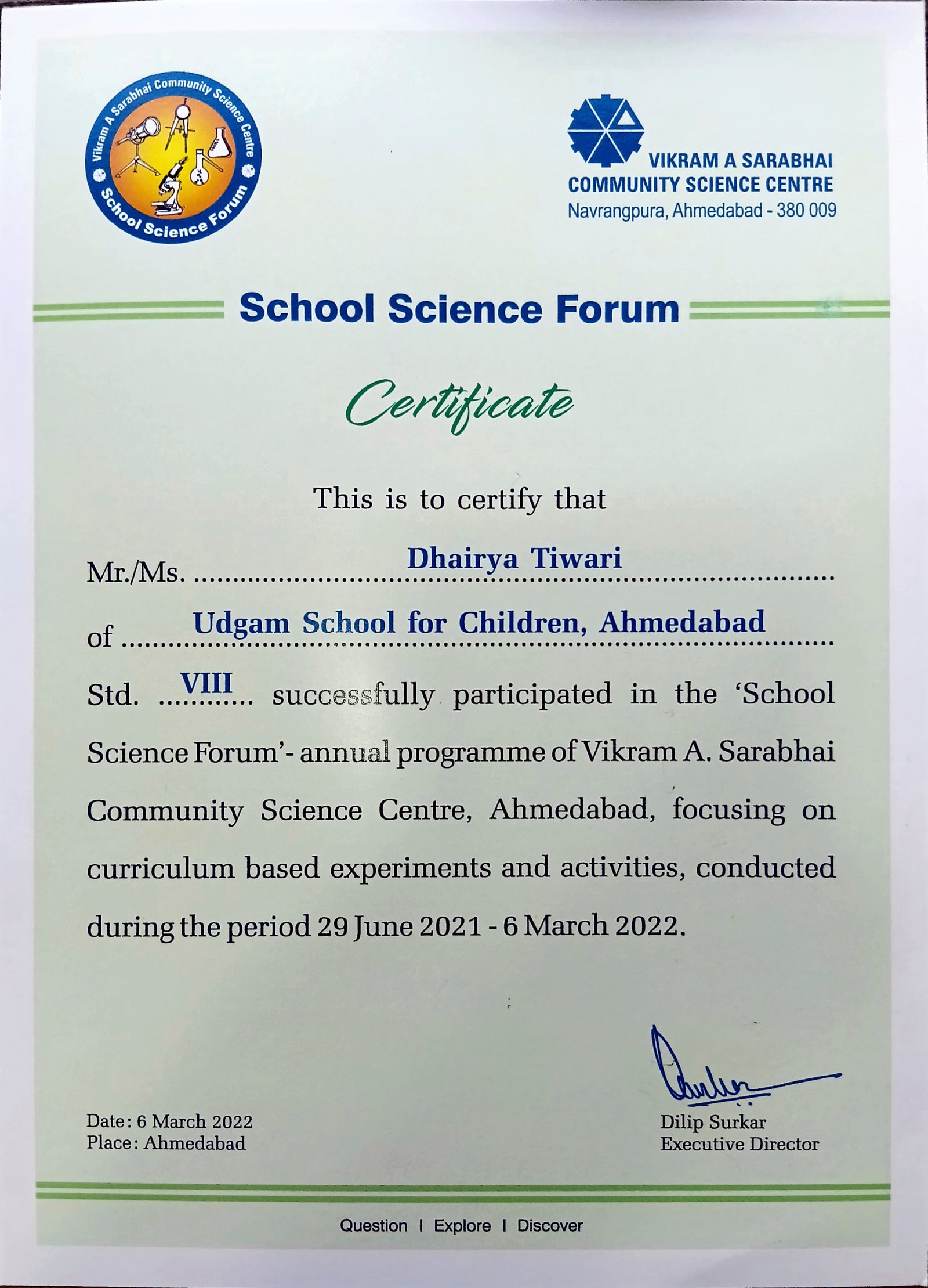 Participation in School Science Forum at Vikram A Sarabhai Community Science Centre