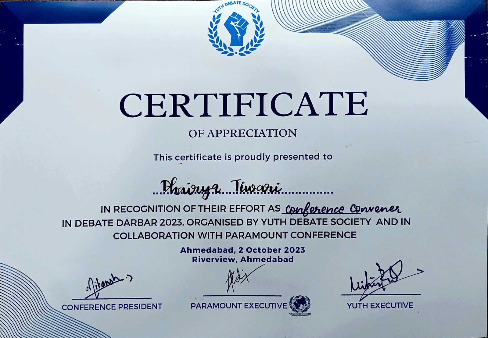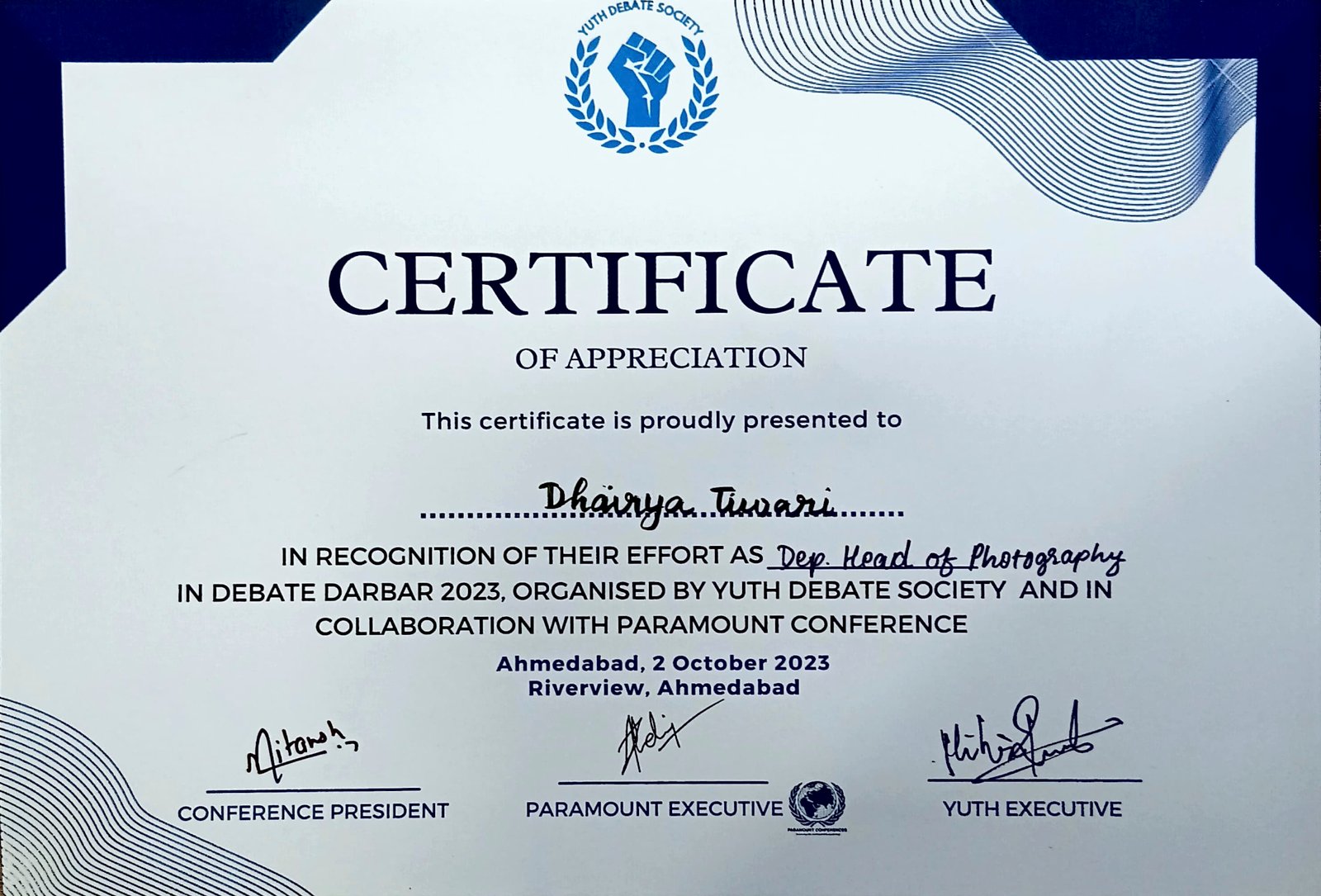 HLCC Mock MUN participation certificate (International Press Photographer)